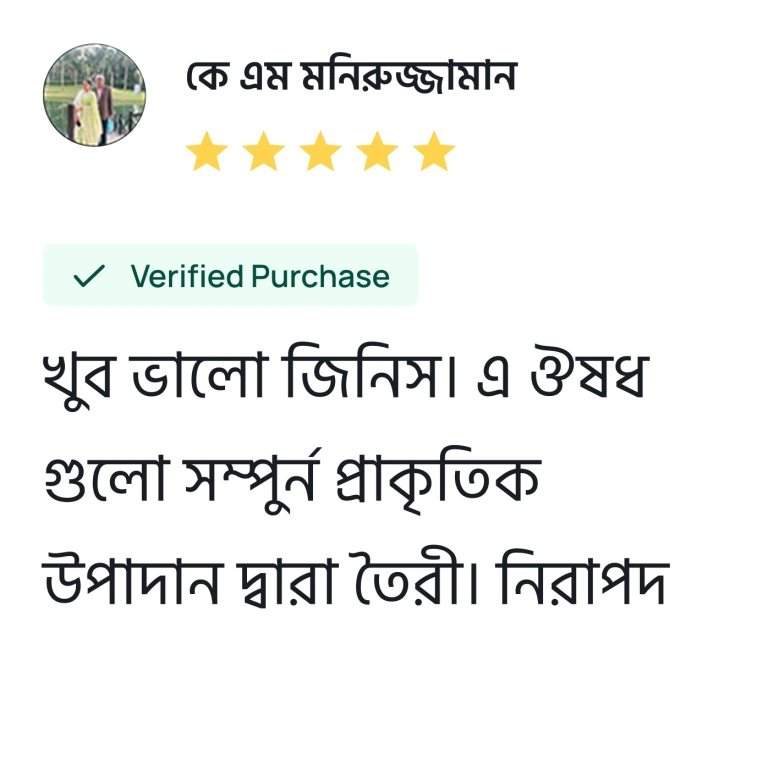 উত্তর : জি স্যার/ম্যাডাম, আমাদের এই রেমেডিটি বাংলাদেশ বিজ্ঞান ও শিল্প গবেষণা পরিষদ (BCSIR) কর্তৃক ল্যাব টেস্টেড। এতে ক্ষতিকর কোন উপদান নেই। তাই নিশ্চিন্তে এটি সংগ্রহ করতে পারেন।
